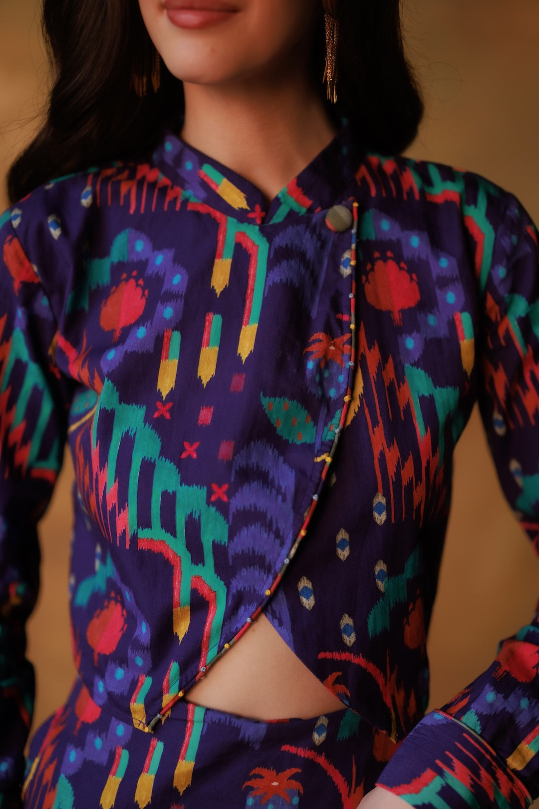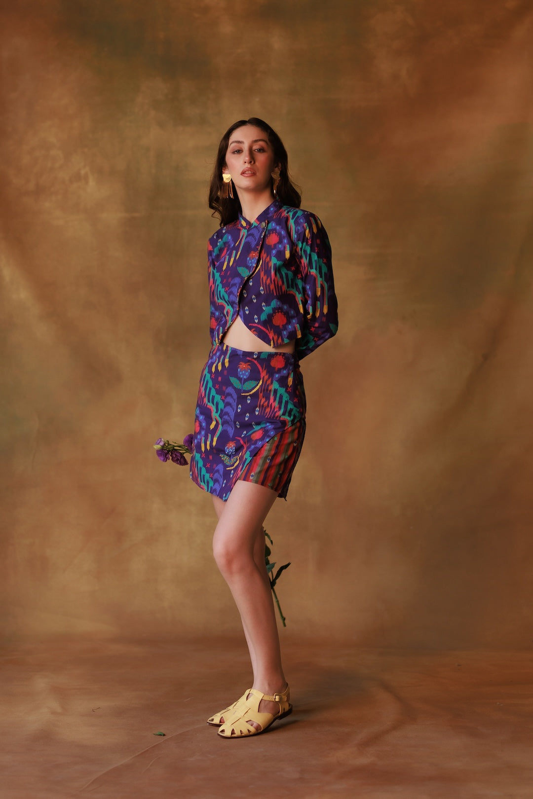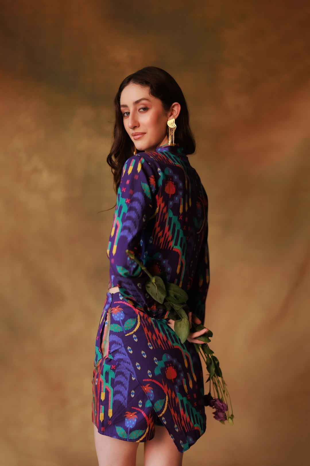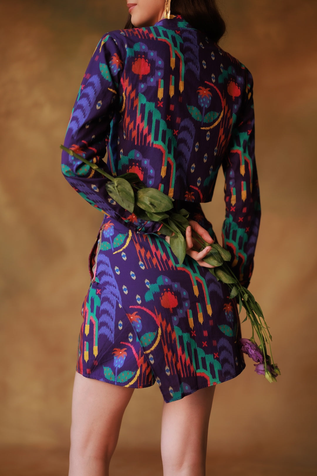Tailored but never stiff, this high-contrast coord set plays with clashing prints like conversation over shared plates. With a sharp striped panel and a hidden pocket — for storing comebacks and compliments on cue.