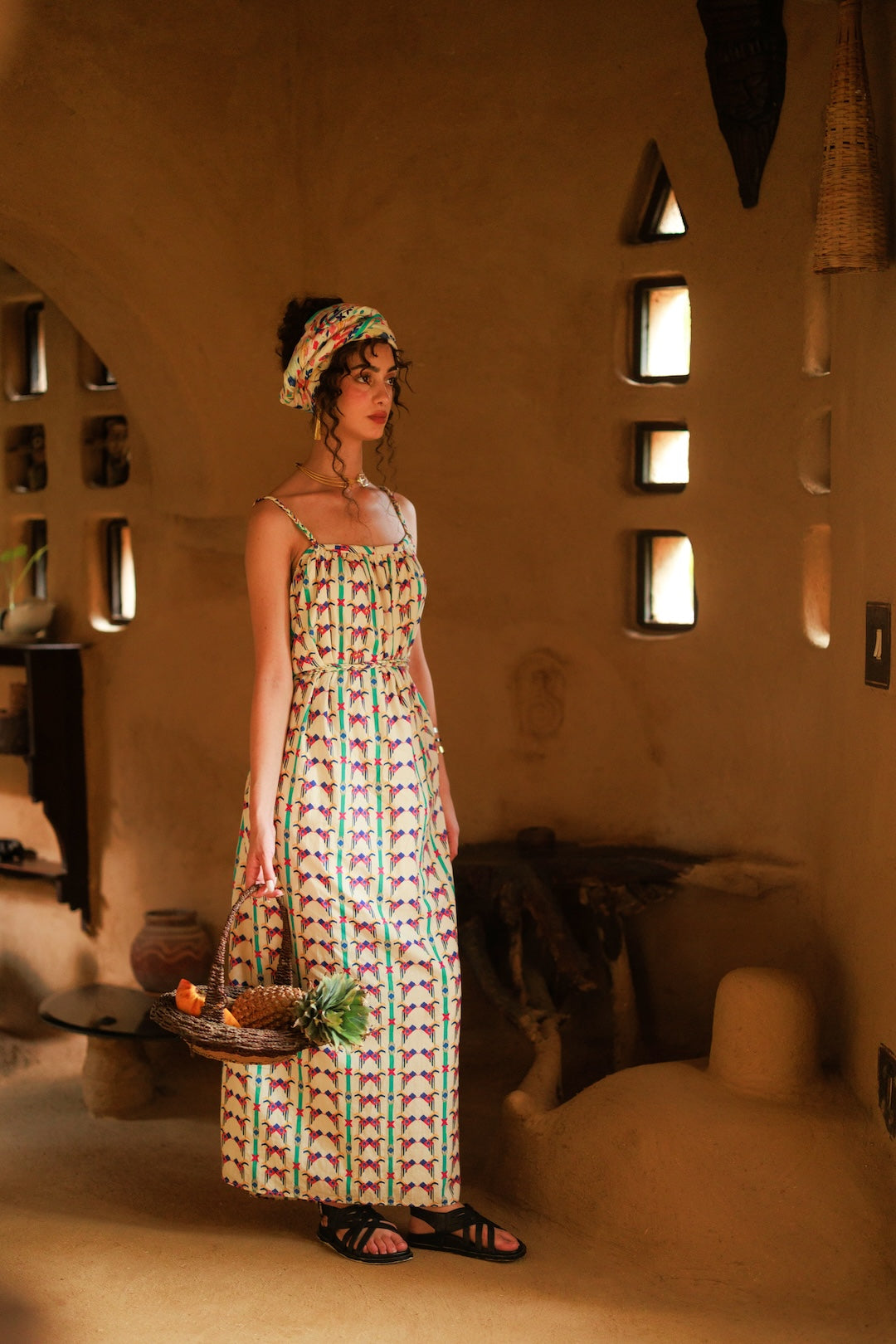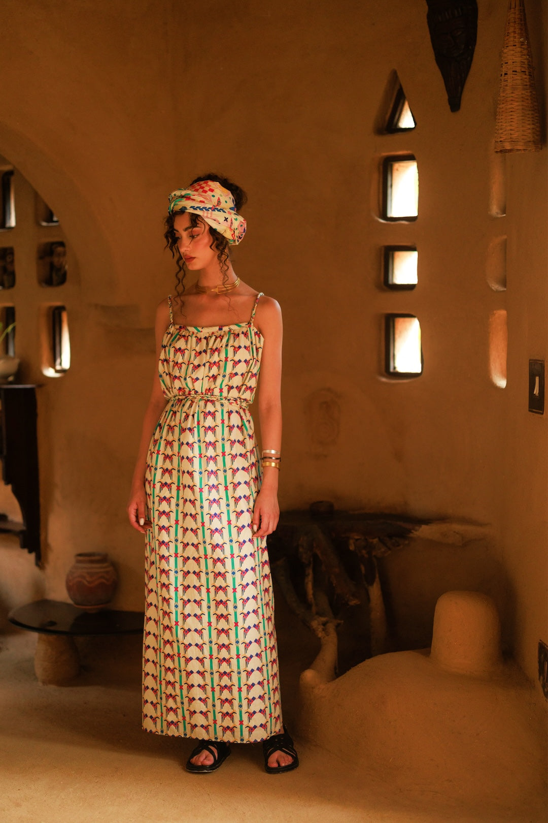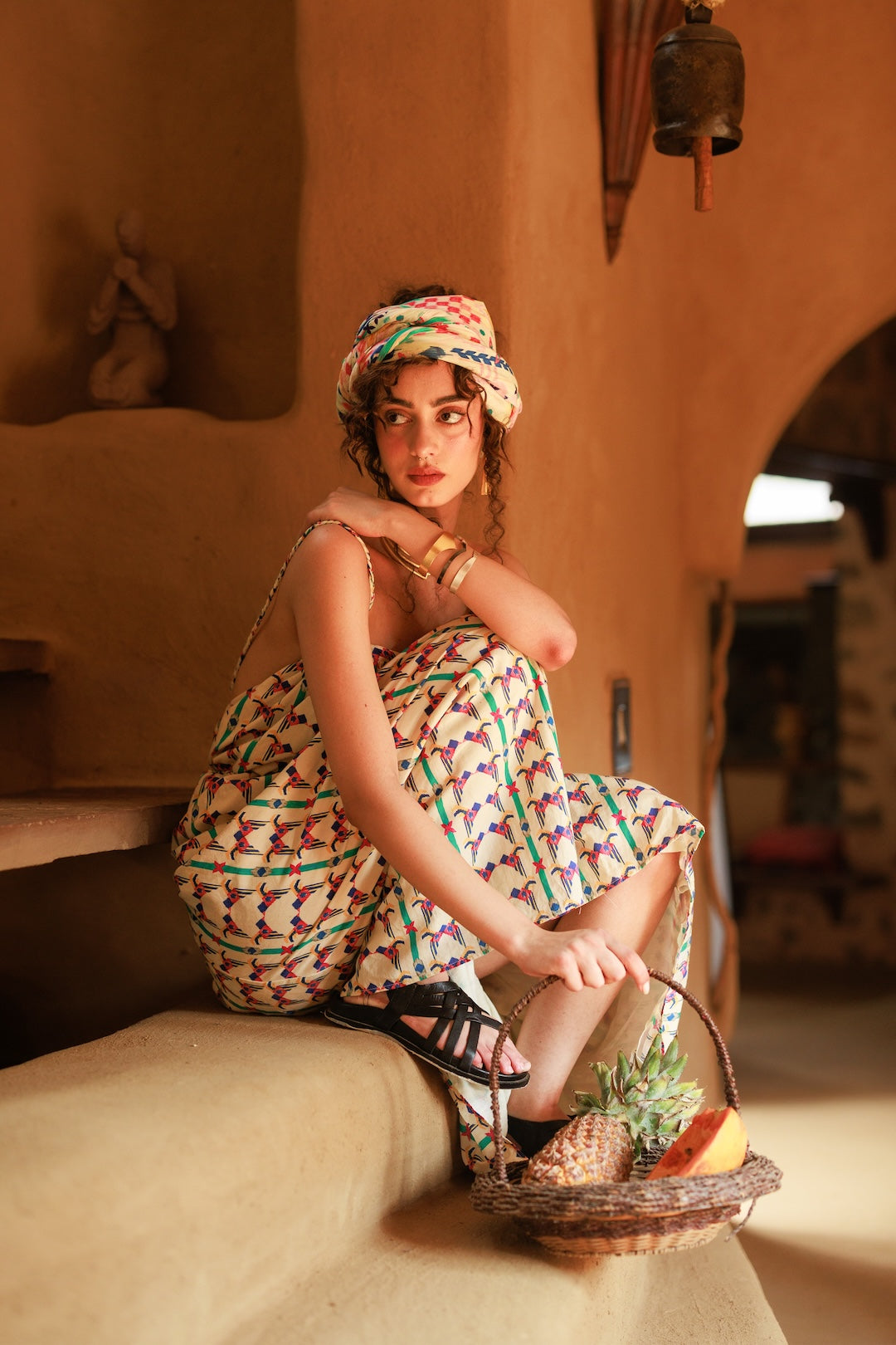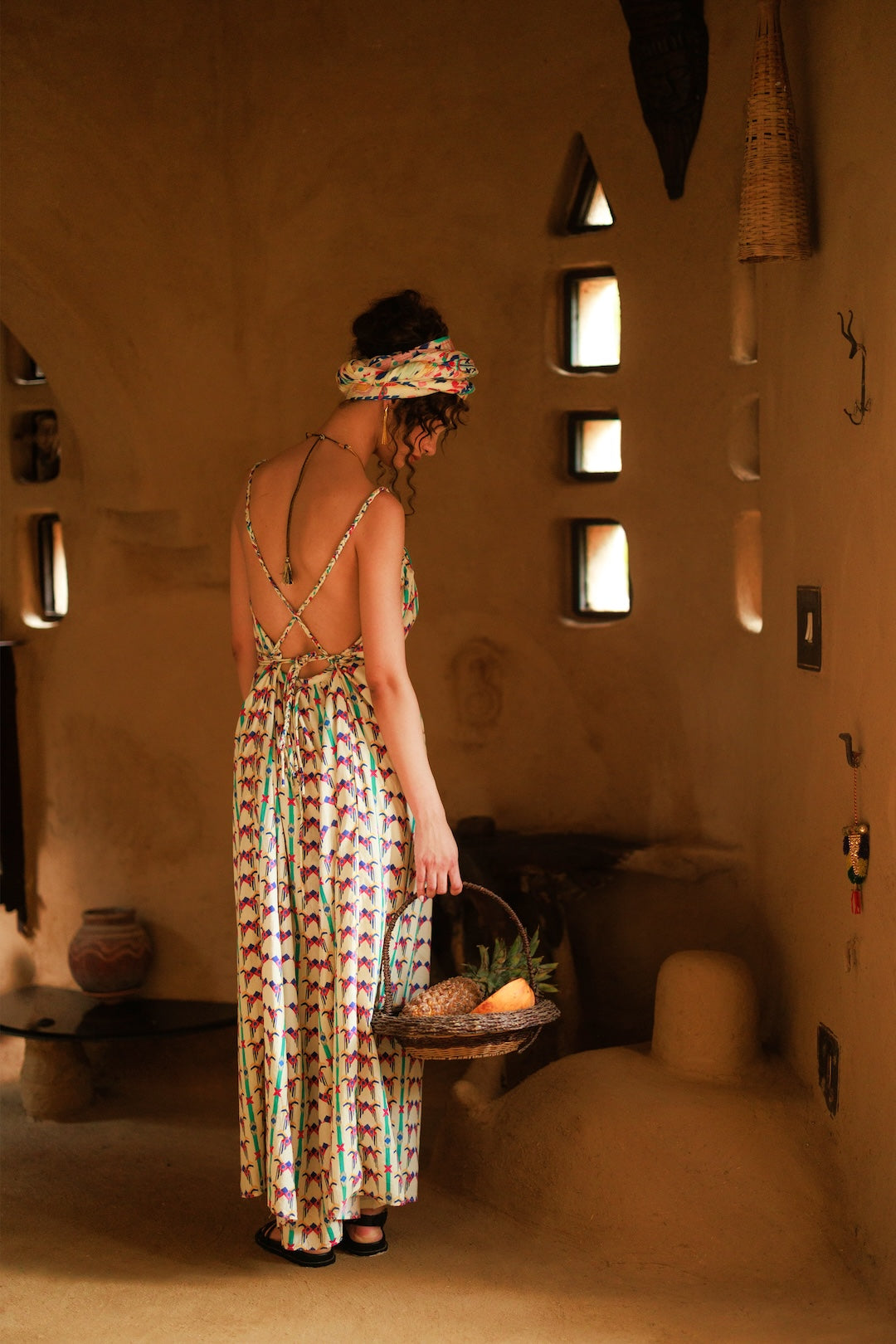 Delicate but not fragile — a flowing bird print maxi with tie-back detail made for memories that wash away, but stick.