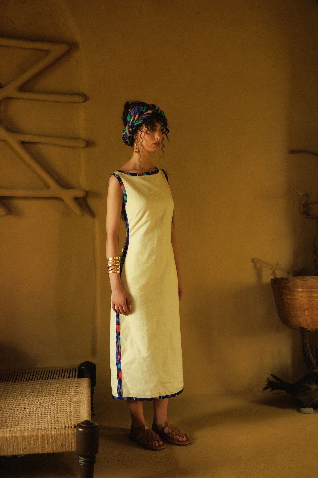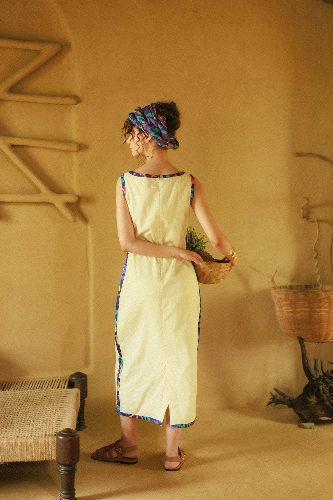 A solid butter yellow sheath that keeps its story inside — the poppy print lining hides like a pressed flower in a letter.